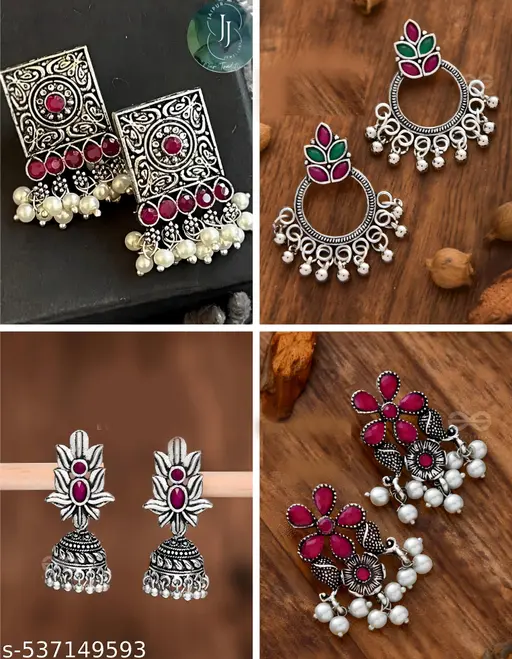 Pack of 4 oxidised silver earrings